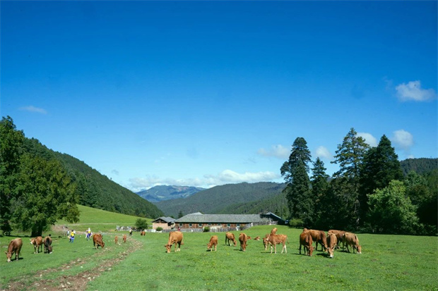 開闊的牧場(chǎng)。地毯般舒適的草場(chǎng),點(diǎn)綴著牛兒和馬兒。草場(chǎng)的盡頭,是一片高大的松林像森林的大門,走進(jìn)去,是忽然